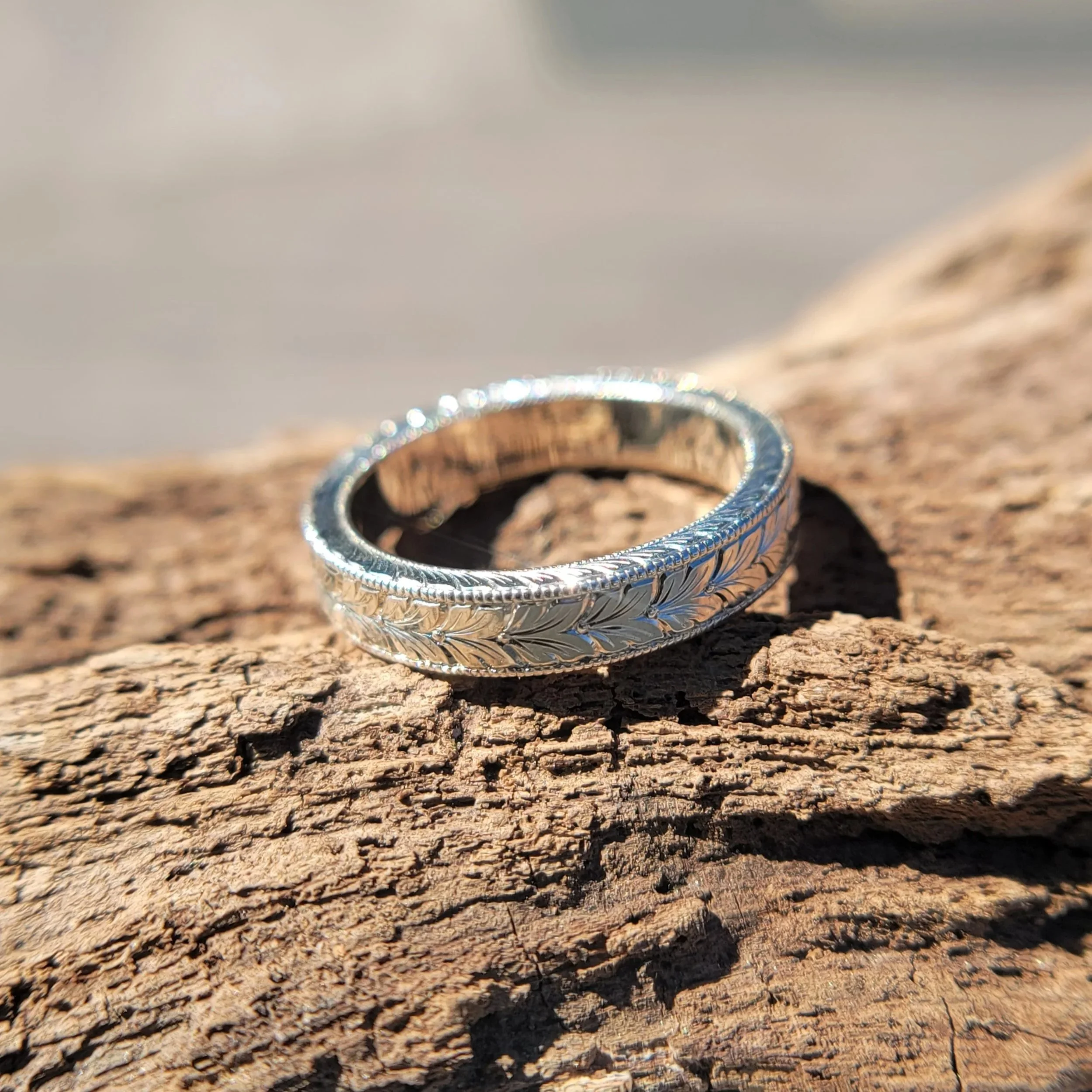 Made To Order Running Laurel Leaf Engraved Band (4mm) from $475.00 Running Leaf Engraved Band (4mm) from $475.00 Have a design in mind? Let’s craft a custom piece together. Start My Custom Design